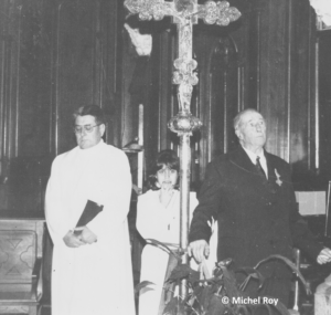 Appuyée aux murs du chœur de l’église s’élevait la chaire du publicateur. A la sortie de la grand-messe dominicale, la foule se pressait jusque sur la route pour écouter les annonces de la mairie. Cette chaire fut déplacée sur la Place de l’Église en 1921 pour permettre l’édification du Monument aux Morts de la Grande Guerre qui y demeura jusqu’en 1965.