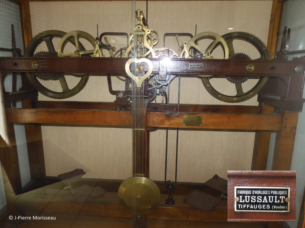 Le clocher de base carrée possède deux cadrans d’horloge, un sur la face Ouest et un sur la face Sud. Ils ont conservé les plaques émaillées d’origine, au nom de Lussault, entreprise installée à Marçay dans la Vienne depuis 1865. En 1870, en rachetant l’atelier de fabrication d’horloges pour édifices existant à Tiffauges, les frères Lussault vinrent s’installer en Vendée. C’est seulement en 2018 que l’activité campanaire quitta les bords de la Sèvre Nantaise.